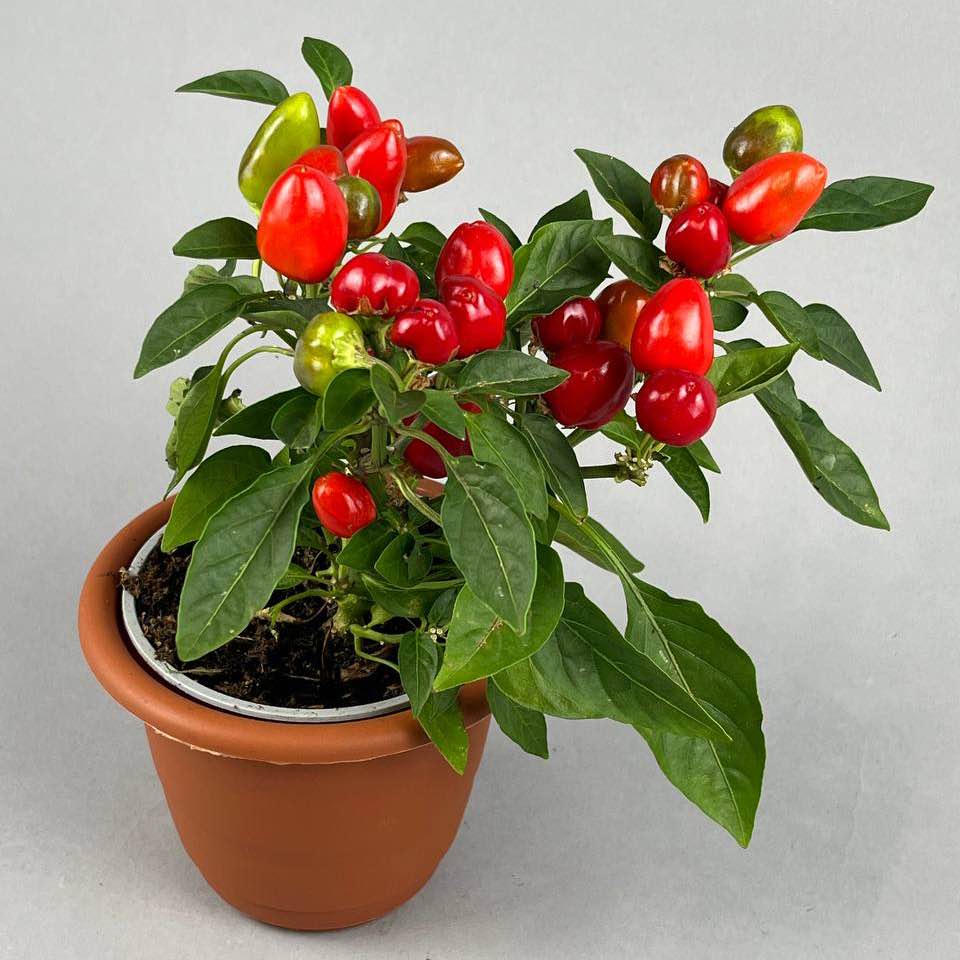 Capsicum pepper in a pot — a vibrant accent to brighten any interior. Its rich colors bring energy and a cheerful mood.A plant that gives a festive feeling every single day.