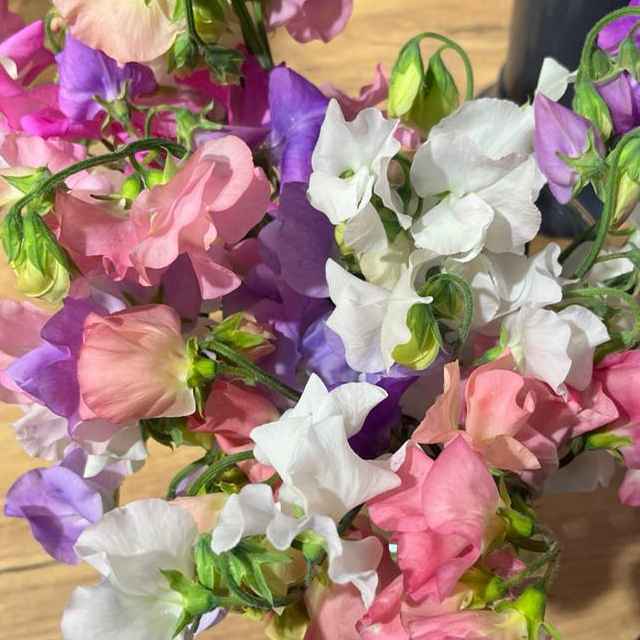 Латірус вражає ніжністю своїх квіток — яскраві відтінки рожевого, фіолетового або білого розкриваються у витончених, майже сердечкоподібних пелюстках. Ці маленькі квіти на тонких, гнучких стеблах створюють ефект легкості і живої динаміки в будь-якій композиції.