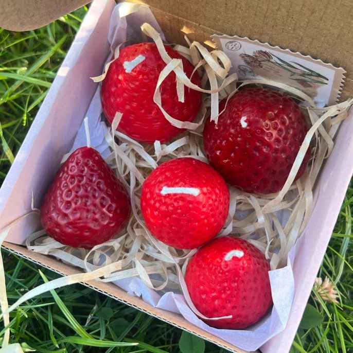 Strawberry Candle Set — a sweet embodiment of summer’s warmth and tenderness. Each candle is handcrafted from pure beeswax and colored with natural dye, giving it an authentic, soft appearance. The total weight of the set is 115 grams, with a burn time of up to 15 hours. The candles release a pleasant berry scent that fills the space with a cozy, carefree, summery mood. The set comes in beautifully designed gift packaging, adding the perfect finishing touch and making it a lovely present. A perfect choice for those who value handmade quality, natural materials, and fragrant seasonal charm in their home.